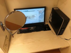 すぐにフロントがあります。アプリで会員登録(※)をし、利用時間と利用したいシートの種類を伝えます。※非会員は料金が割り増しになります。