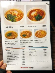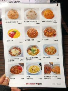 また全席共通で、カレーライスや炒飯、パスタなどの食事メニューを頼むことも可能。