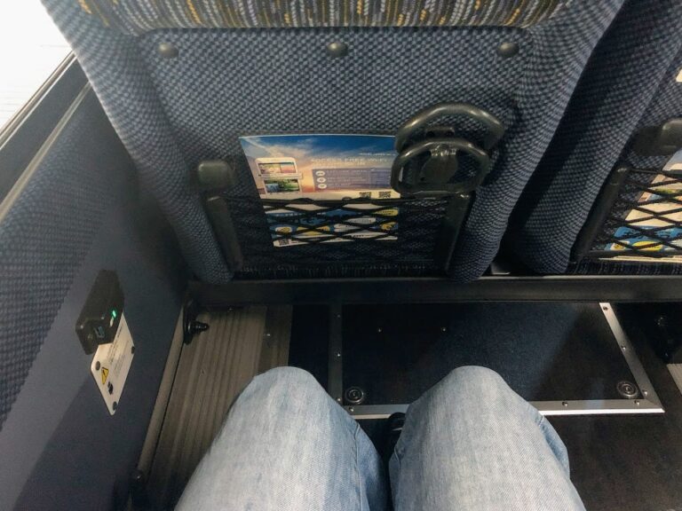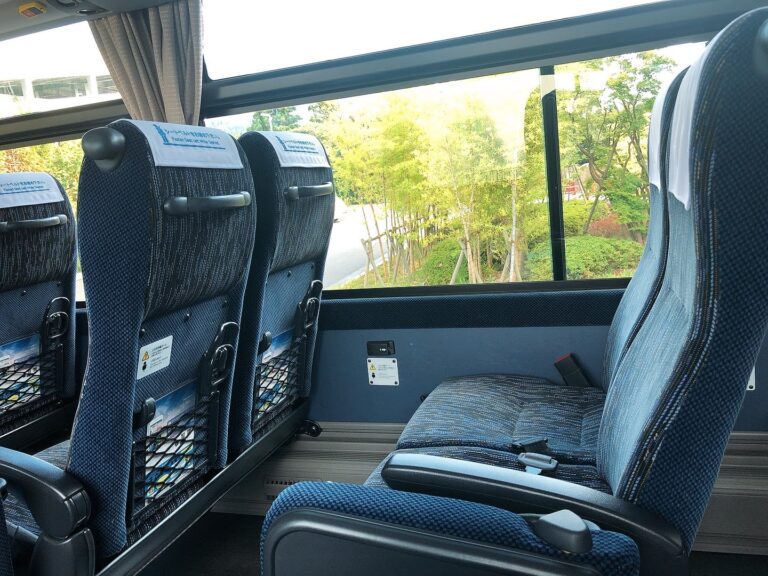 定刻どおり出発!車内の様子はご覧のとおりです。4列シートでUSBポート付き、Wi-Fiも使えます。空調がほどよく効いていて快適です♩お手洗いは最後列にありました。
