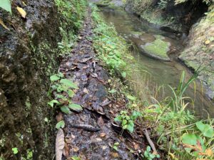 しかし、道幅がせまく危険な箇所も……!滑りにくい靴を用意するなど、足元には気を付けていきましょう。