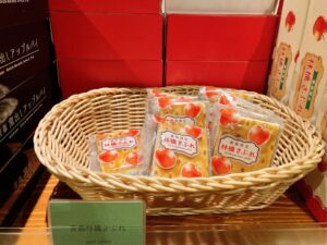 お風呂あがりはお土産ショップへ。青森といえば「りんご」ですが、そのりんごをモチーフにしたグッズや飲み物、お菓子など勢ぞろい!しかもほかのお店では見かけないようなものがたくさんあります。普段お土産難民になりがちな私ですが、こちらでは買いたいものばかりで困ってしまいました。