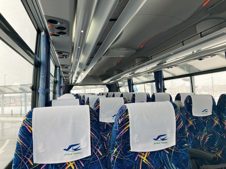バス車内は4列シート。コンセントやお手洗いはついていないので、あらかじめ済ませておくといいですね。