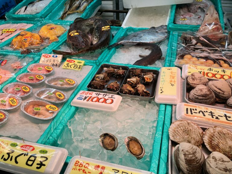 食後は八食センター内を散策。見たことのないお魚がたくさん並んでいるので、水族館にいるような感覚も味わえます。ちなみに寒い日なら、バスのトランクでも日持ちするそう。市場で鮮魚を購入できるチャンスはなかなかないので、嬉しいですよね。