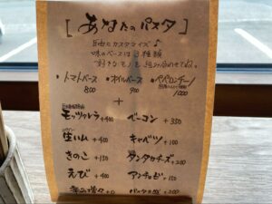 店員さんと相談して、「マルゲリータ」と、パスタを自分好みにカスタマイズできる「あなたのパスタ」から「トマトベース+ベーコン」を注文しました!(1人で食べるには、やや欲張りな気もしますが……)