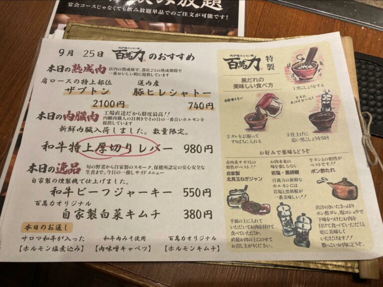 お次は、北見ならではの焼肉を味わえる焼肉屋「肉炉端ホルモン焼 百萬力」へ!