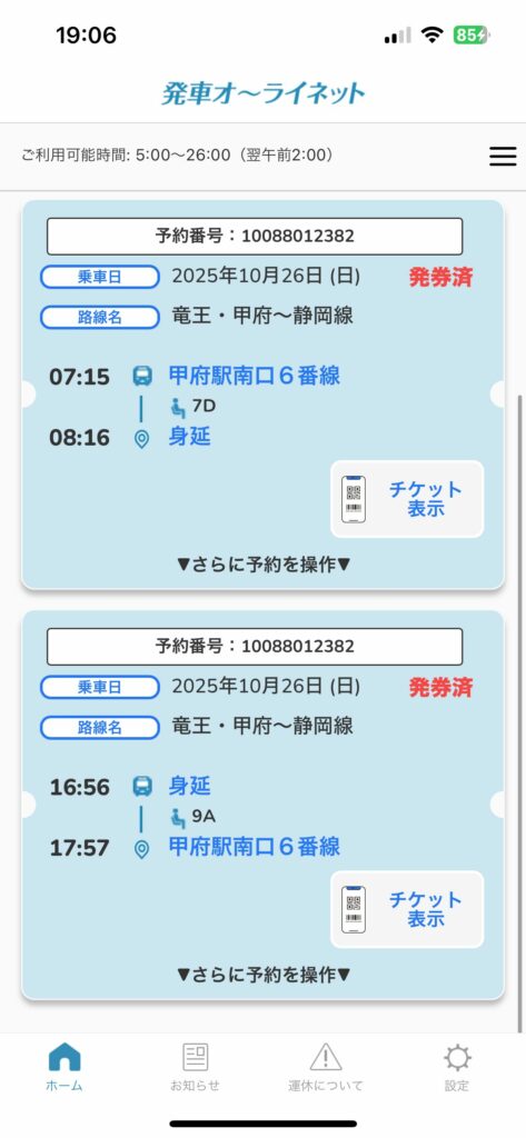 発車オーライネットのアプリを使用すれば、予約メールを探してわたわたすることもなく、スムーズに乗車することができました!