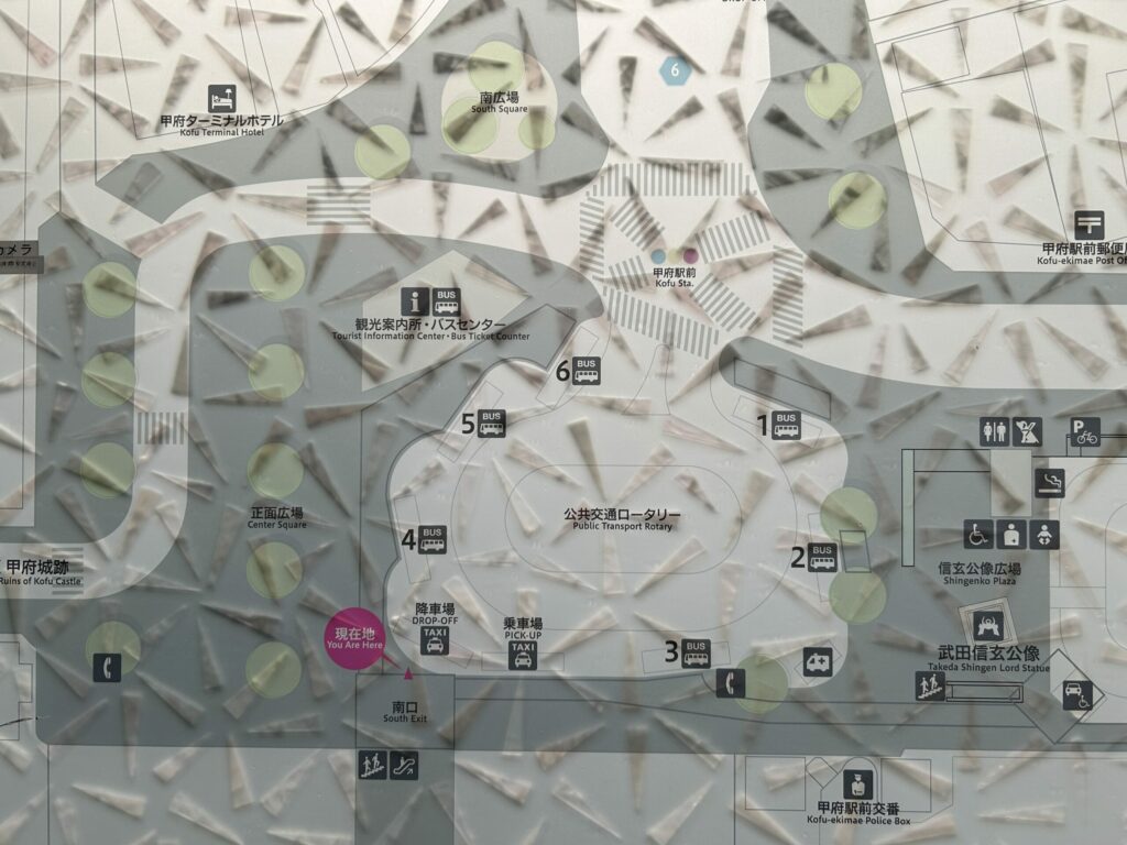 「甲府駅」から乗車する場合の、バスのりばへの行き方をご紹介します。