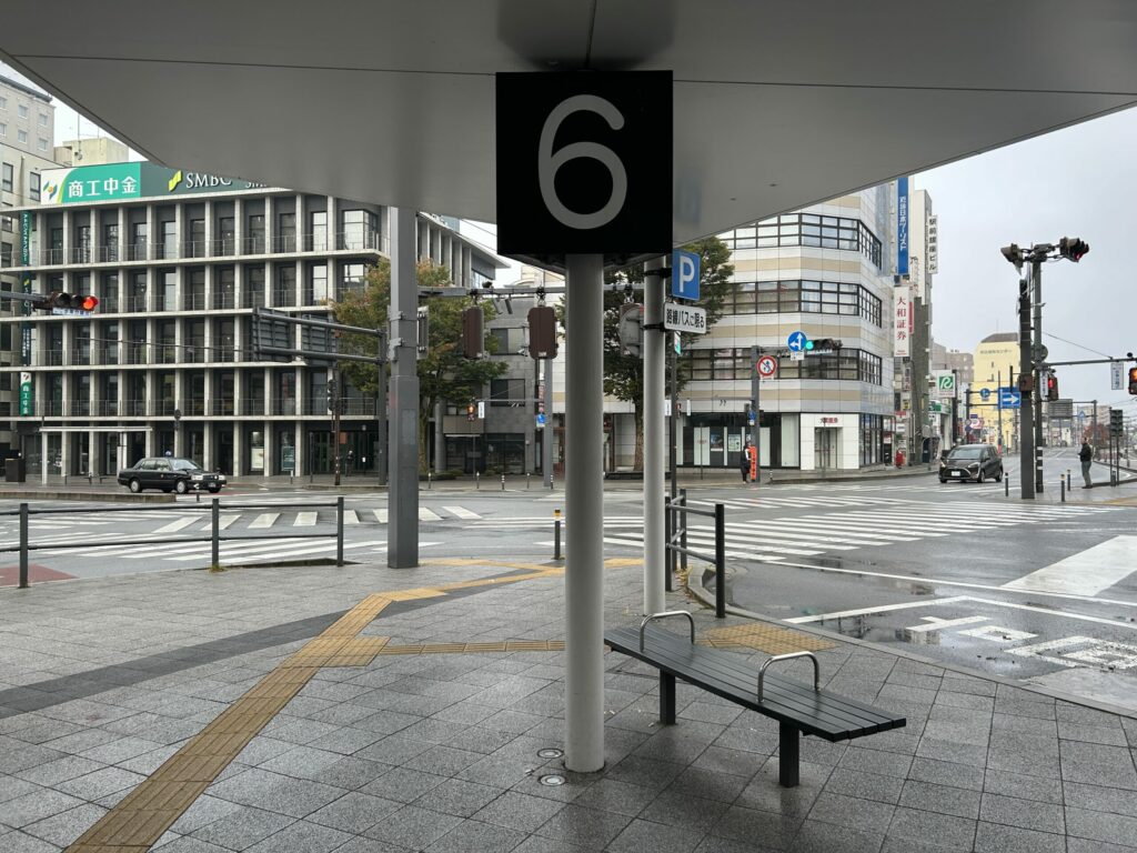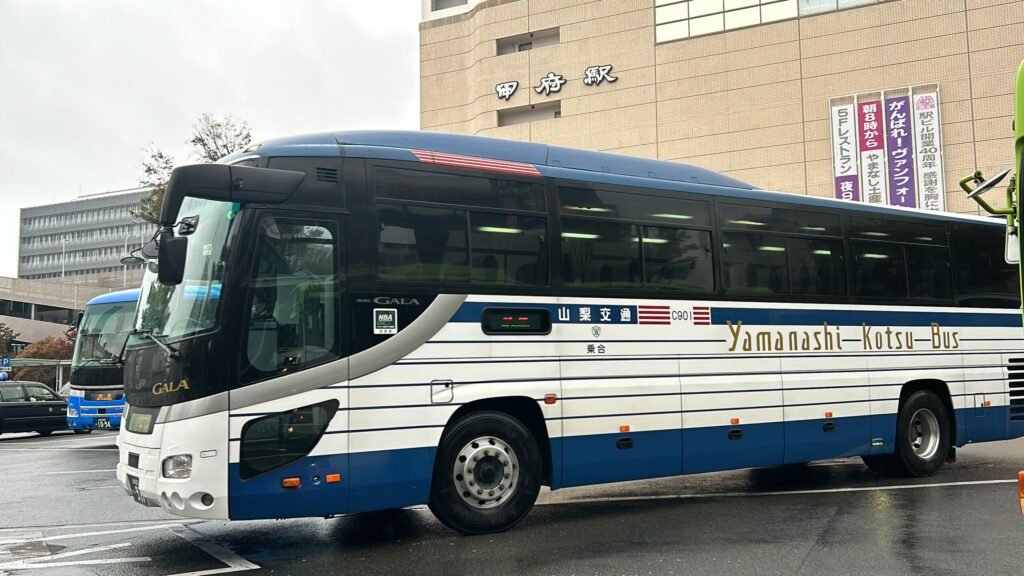 甲府駅6番のりばで待機していたところ、定刻通りにバスが到着。