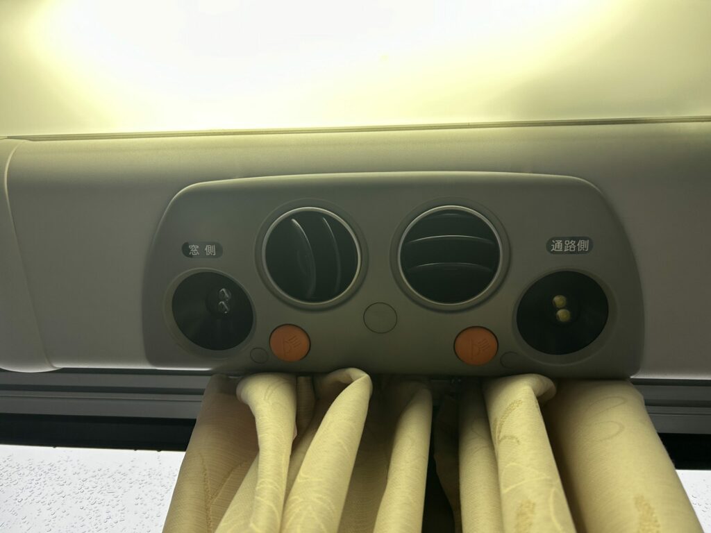 シートは写真の通りややリクライニングした状態なので、初期設定でリラックスして過ごすことができました!