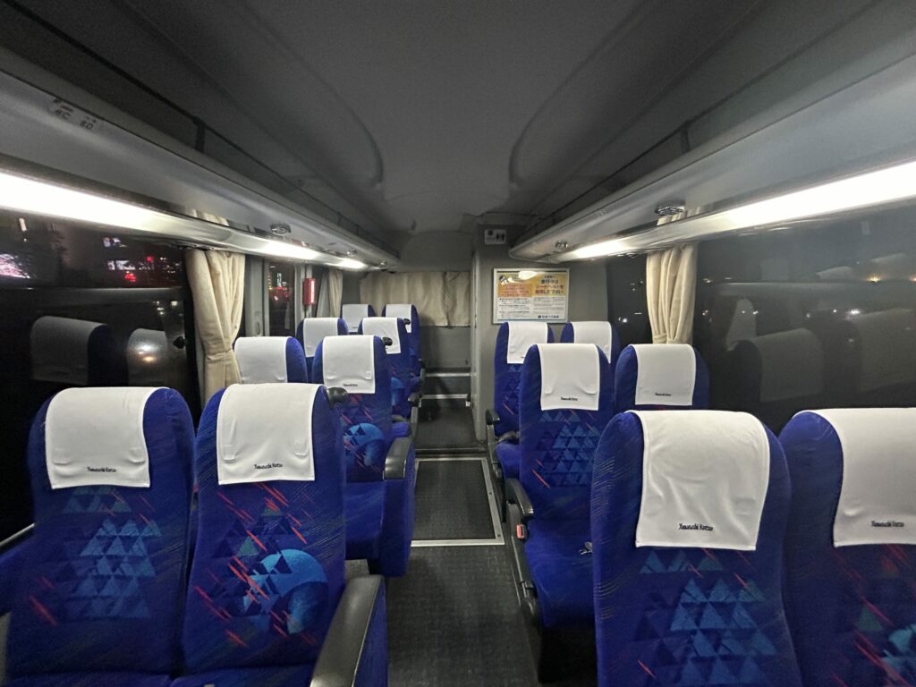 テーブルはないので、バスの中で飲食をする場合はパンやおにぎりがおすすめです!