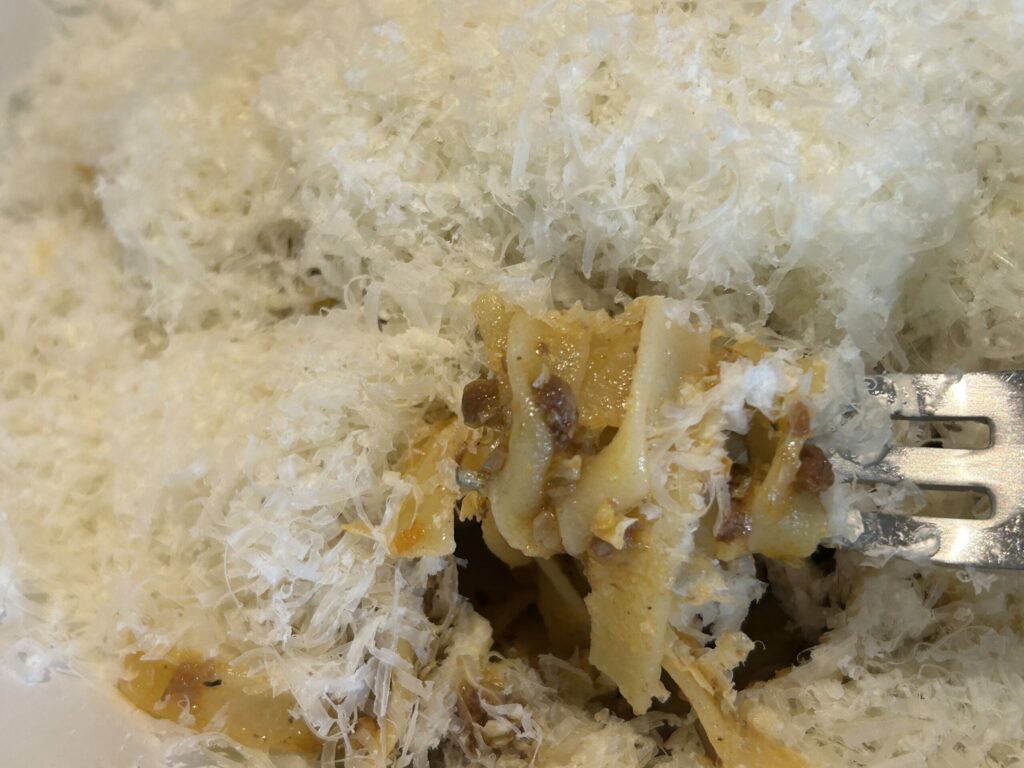 パスタが迷子に?!チーズをかき分けて味わう「下部温泉ボロネーゼ」