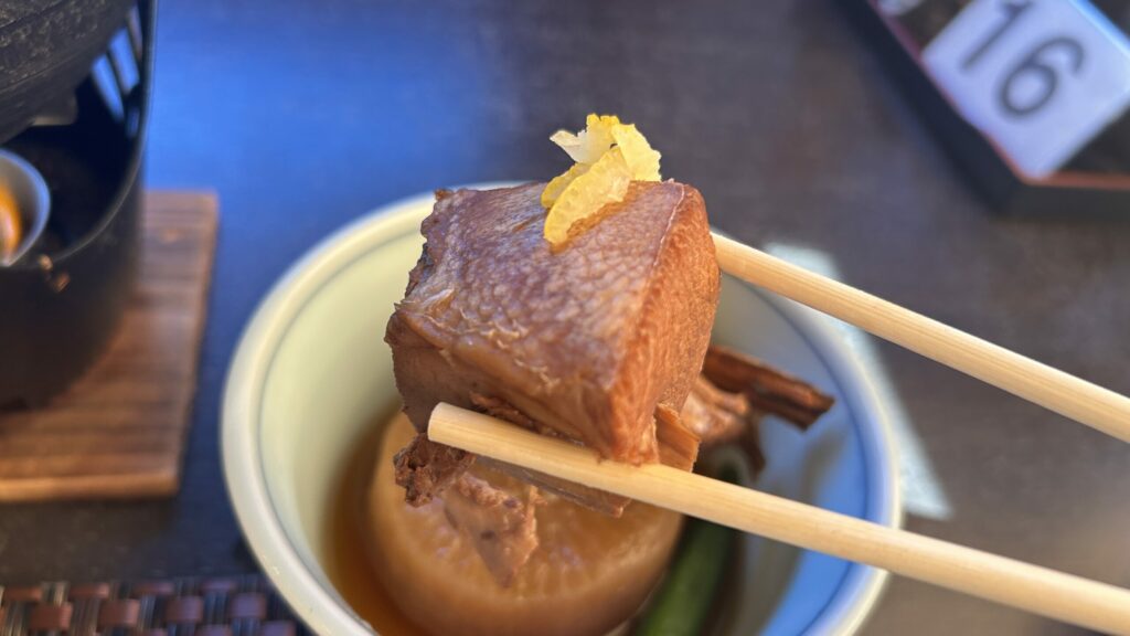 そしてぶり大根もとにかく美味!!!!!お箸で切れる柔らかさで、口の中でほろっほろにほどけます。旨みや脂がジュワッと広がり、のんびりしていると口の中から無くなってしまう……ので、急いで白米とのハーモニーを楽しみます。