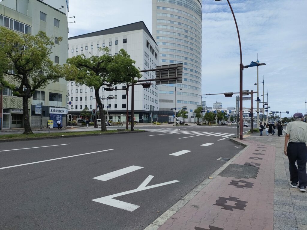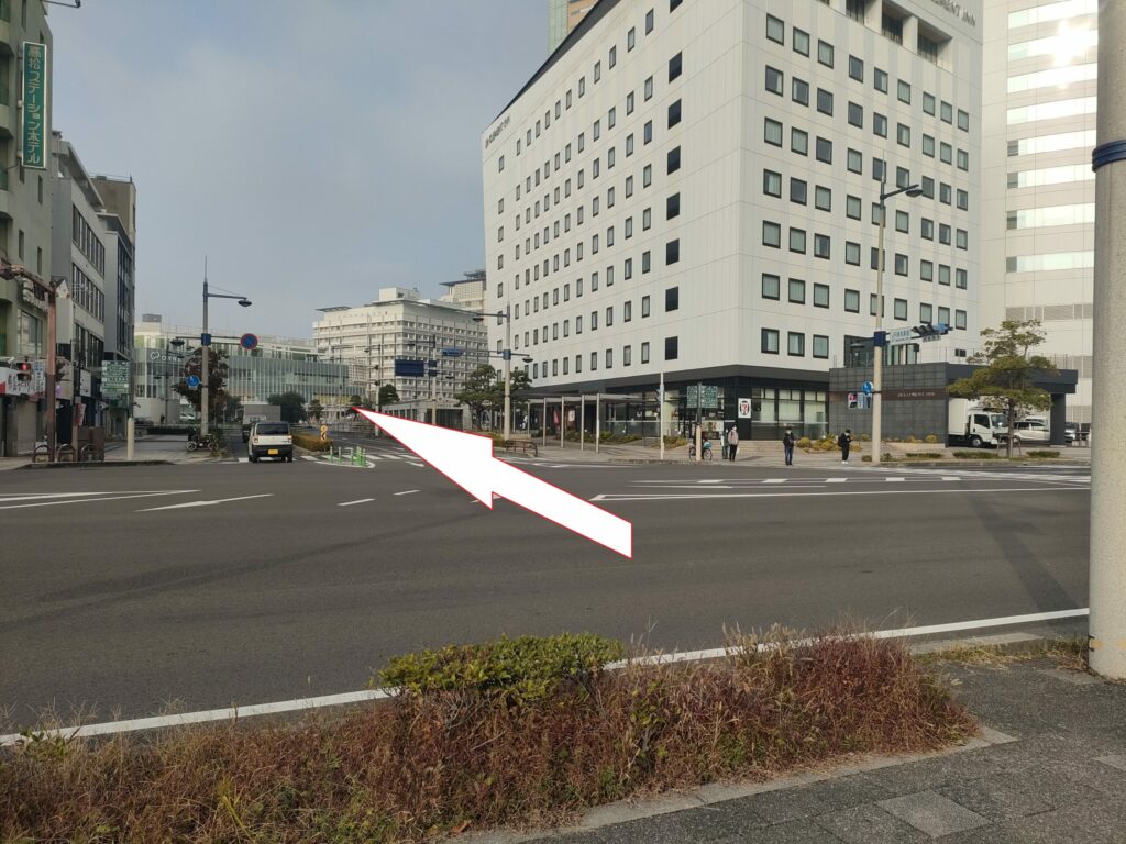 高松築港駅を降りると、すぐ大通りがあるので、右に曲がって進んでいきましょう。