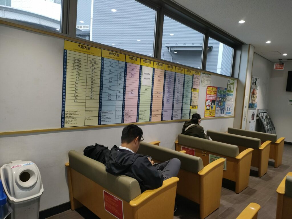 なお神戸・大阪行きの便は本数が多いので、時刻表を見比べて、一番早く出発する運行会社の窓口で乗車券を購入しましょう。