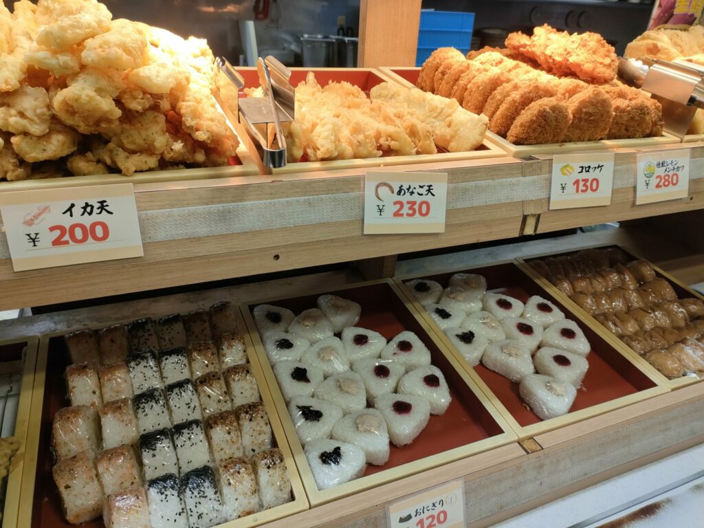 メニューを伝えた後に、お好みで天ぷらやおにぎりなどを取って、最後にお会計をするスタイル。
