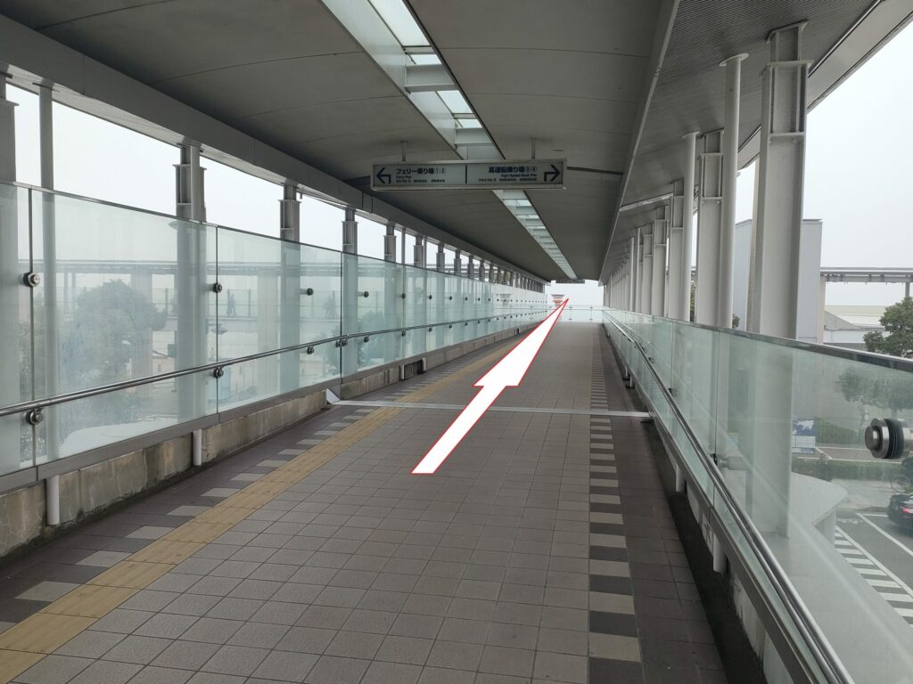 エスカレーターを上がると、フェリーのりばへの連絡通路が始まります。