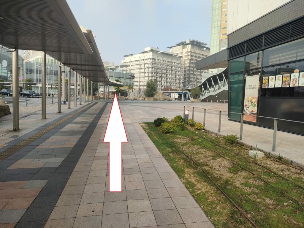 まずは高松駅高速バスターミナルを出て左へ行きます。
